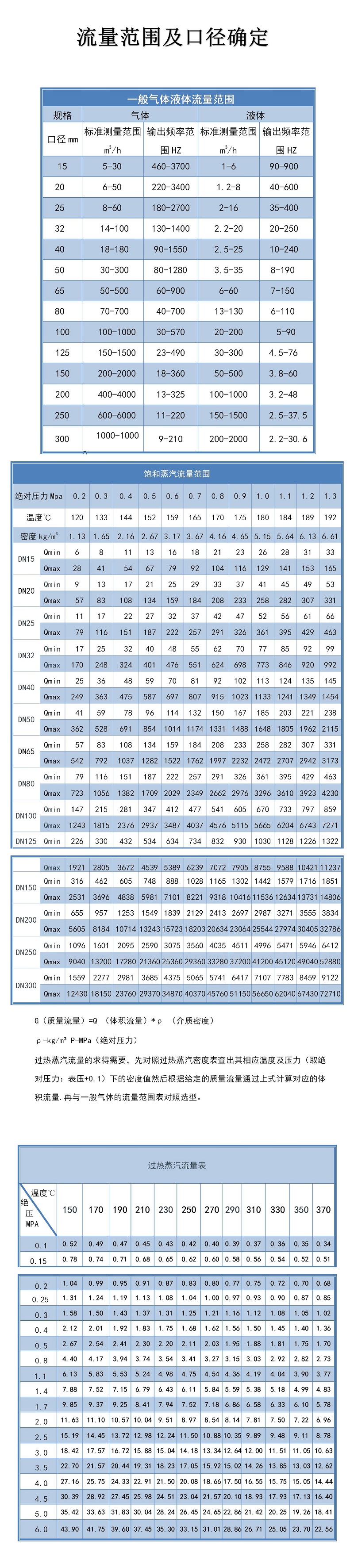 1、選型之前,應先確定被測介質的類型和流量值(可以是估算值),再按表中渦街丝瓜视频在线免费观看在測量不同介質時所對應的流量範圍,選定渦街丝瓜视频在线免费观看的規格。